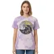 Polera Oversize Tie Dye cuenta con un efecto de teñido irregular que mezcla tonos blancos con un color secundario (disponible en verde musgo/grisáceo o púrpura/lavanda).En el pecho destaca un estampado circular de estilo retro que muestra una ola rompiendo y un sol radiante de fondo.